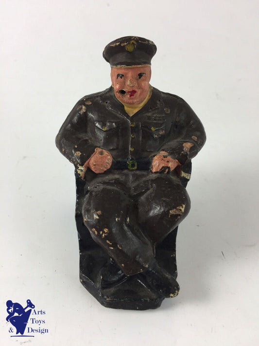 JRD FRANCE VERS 1948 RARE FIGURINE WINSTON CHURCHILL DANS SON FAUTEUIL L 9CM