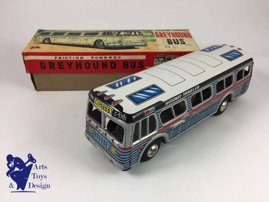 JOUET ANCIEN ICHIMURA JAPAN AUTOCAR TOLE GREYHOUND FRICTION 26CM C.1960 AV BOITE