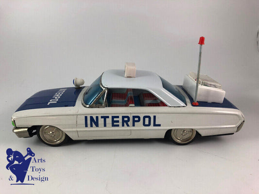 JOUET ANCIEN ICHIKO FORD GALAXIE POLICE CAR INTERPOL FRICTION TIN JAPAN 33CM