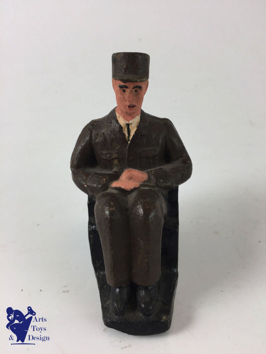 JRD FRANCE VERS 1948 RARE FIGURINE GENERAL DE GAULLE DANS SON FAUTEUIL L 9.5CM