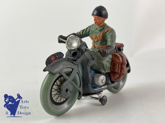 ELASTOLIN FIGURINE MOTO ARMEE SUISSE ROUES TOLE VERS 1937