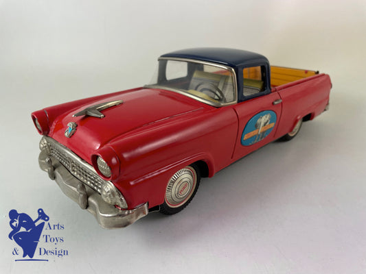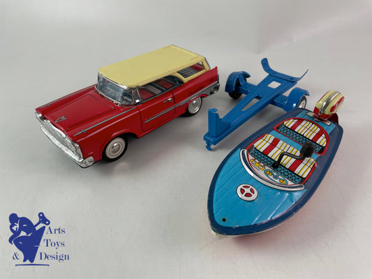 JOUET ANCIEN ICHIMURA JAPON STATION WAGON AVEC BATEAU FRICTION VERS 1960