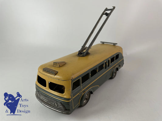 JOUET ANCIEN JOUSTRA AUTOCAR TROLLEY MECANIQUE VERS 1950 L 30CM