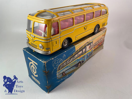 JOUET ANCIEN TIPPCO TCO AUTOCAR DB BUNDESPOST FRICTION VERS 1960 L 34CM