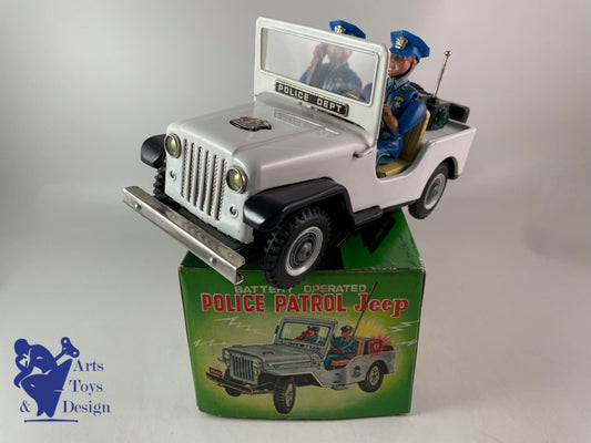 JOUET ANCIEN TN NOMURA POLICE PATROL JEEP BATTERY OP VERS 1960 T2