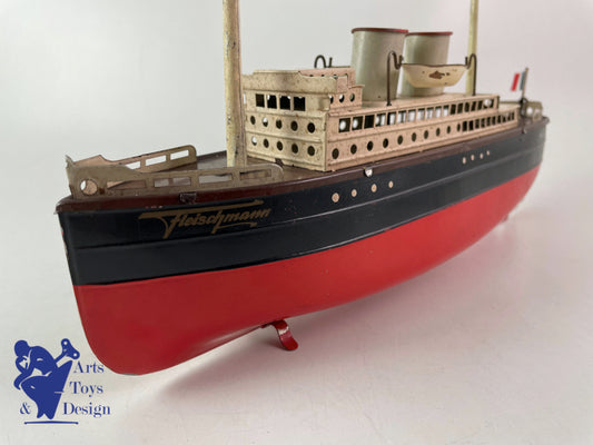 JOUET ANCIEN FLEISHMANN BATEAU LINER MECANIQUE 32CM VERS 1930