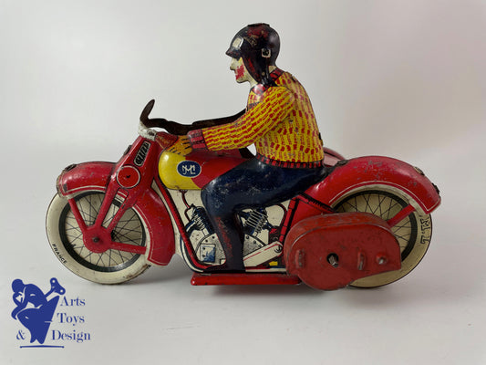 JOUET ANCIEN JML MOTO SIDE CAR TOLE MECANIQUE L.20 CM VERS 1930