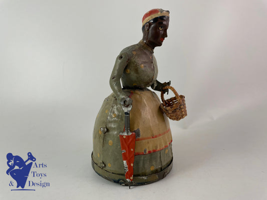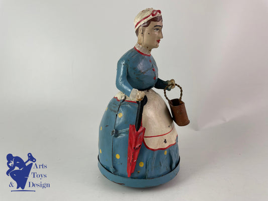 JOUET ANCIEN GUNTHERMANN FEMME AU PARAPLUIE MECANIQUE VERS 1910 H 17CM