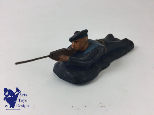 JRD FRANCE VERS 1935 FIGURINE SOLDAT MARIN ALLONGE AV FUSIL L 13.5CM SOCLE BLEU