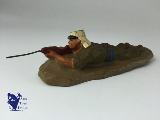 JRD FRANCE VERS 1935 FIGURINE SOLDAT LEGIONNAIRE ALLONGE AV FUSIL L 13.5CM
