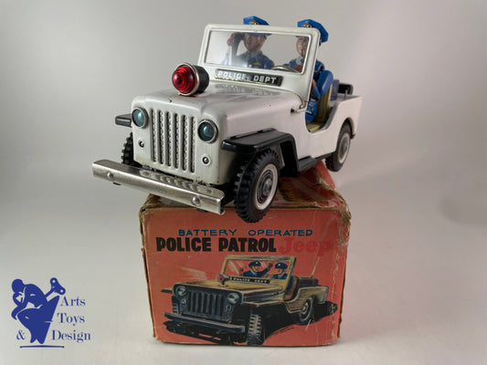 JOUET ANCIEN TN NOMURA POLICE PATROL JEEP BATTERY OP VERS 1960 T1