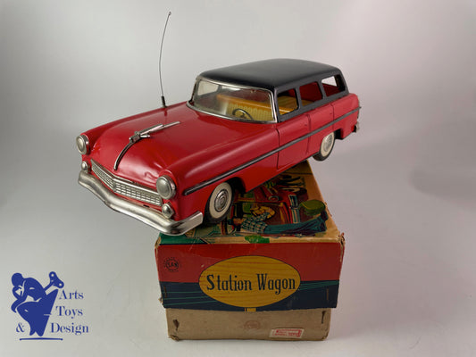 JOUET ANCIEN ICHIMURA JAPON STATION WAGON AVEC BATEAU FRICTION VERS 1960